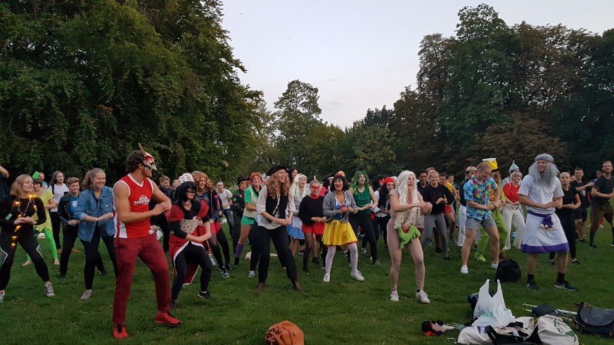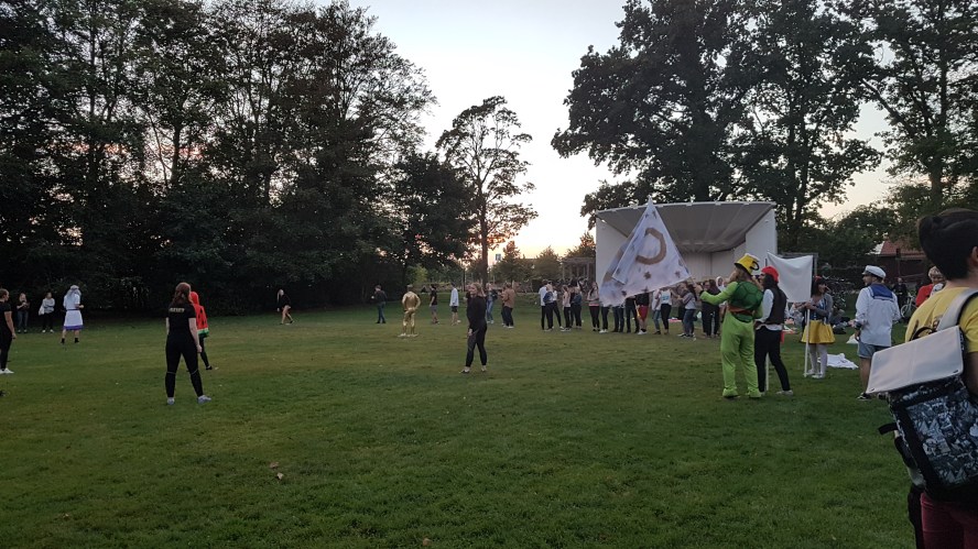 Stämningen var på topp i Stadsparken idag när Medicinska Föreningens novischer från läkarprogrammet, audionomprogrammet, biomedicinprogrammet och logopedprogrammet deltog i en stor brännbollsturnering för att se vilken novischgrupp skulle visa vara bäst. Arrangemanget ordnades av Kulturutskottet (KULU), ett av Medicinska Föreningens sociala utskott som nyss kommit tillbaka efter ett år i dvala. Freja Franzén och Emilia Blomberg ansvarade för att organisera evenemanget, och på plats fanns även Novischgeneraler Fabian Rosén, Anton Håkansson och Emelie Andersson. De sex lagen spelade mot varandra i stadsparkens kvällsljus, där extrapoäng gavs varje gång innelaget slog kullerbyttor, fram till att ett oväntat besök dök upp. Det visade sig vara Juridiska Föreningens Novischförmän Gabbi Meskenaite och Clara Olsson, som hade spelat brännboll med deras idrotsutskott, som kom för att utmana våra lag. De två kårerna spelade emot varandra och hade det roligt, även om det blev oklart vem som egentligen vann slutspelet. Trots att det rådde en viss rivalitet mellan de två kårerna (som sjöng deras novischlåtar för varandra) så avslutades kvällen vänligt, och Medicinska Föreningens novischer fick beröm för deras framträdande av årets Novischlåt ”Could be love” (Deepend ft. Joe Killington) i stadsparken. Imorgon fortsätter Medicinska Föreningens Novischperiod med en pubrunda, som kommer att avslutas på Göteborgs Nations Onsdagsklubb (den första av sitt slag för terminen).