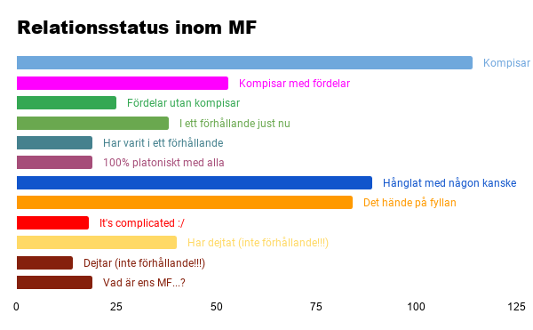 För några veckor sedan skickade Sonden ut en enkät för att undersöka relationerna mellan studenterna inom MF. Som ni ser ovan blev reaktionerna både starka och spridda, och responsen blev större än vad vi hade kunnat hoppas på. Över 200 svar trillade in, utspridda över alla program och terminer och vi kan äntligen dela dem med er. Många valde även att skicka in egna tankar, skvaller och annat juicy i “svara fritt”-delen av enkäten (till redaktionens stora nöje) och såklart har vi plockat ut vissa godbitar.