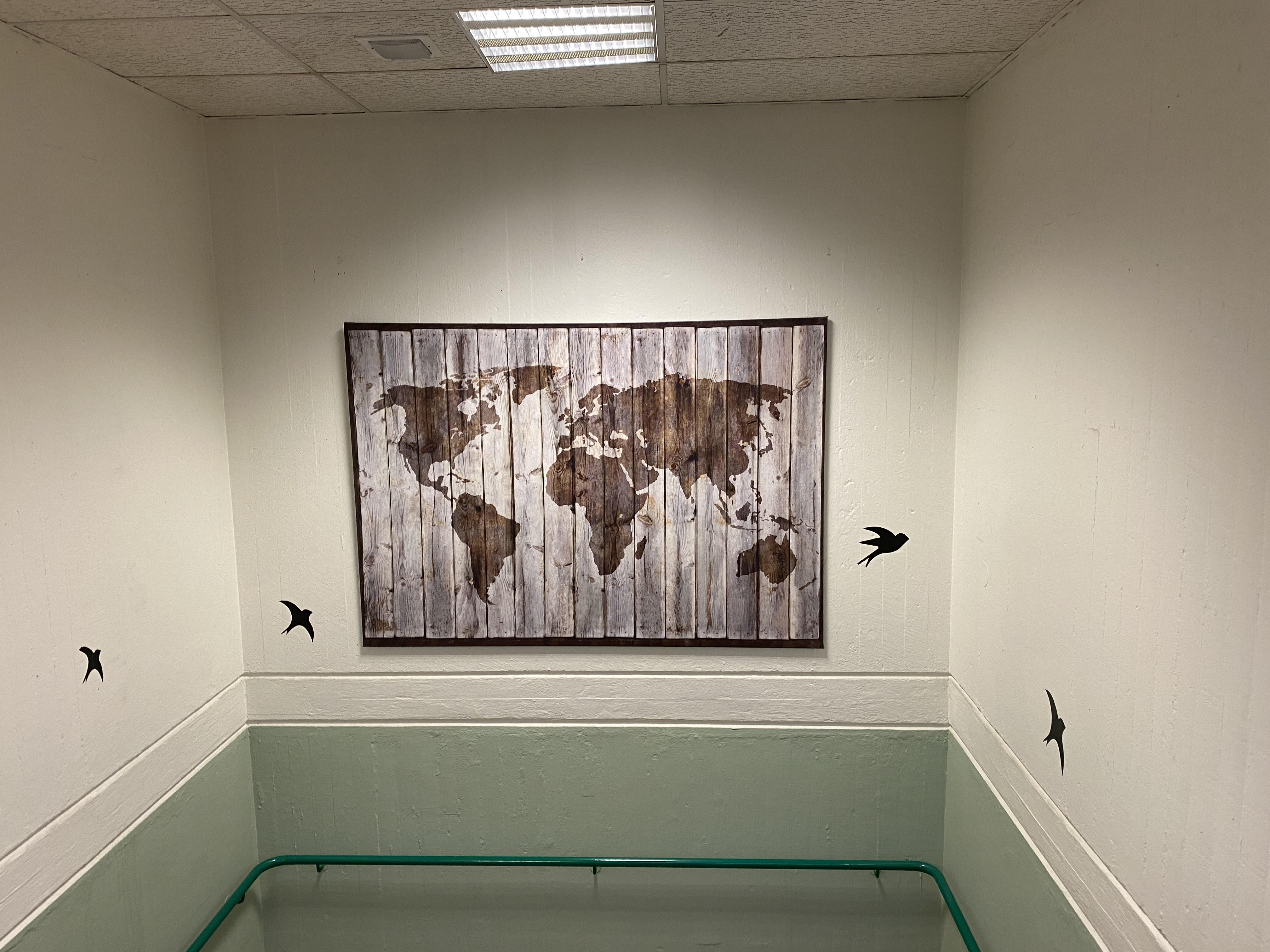 … men 168 svalor tapetserade på väggarna i till synes slumpmässiga arrangemang går inte att misstolka. Sommaren är evigt fryst i tiden på Health Sciences Centre (HSC).
