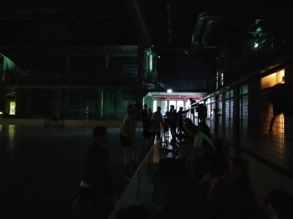 Sedan var det dags för oss i Murphys lag att spela “sump-final”, vilket man kan korta ned till bara “final” om man ska återberätta historien, och det var då det började bli dramatiskt! Några minuter in i matchen fick en kille i motståndarlaget (“i kärlekens tecken”) ett guldläge och sköt mot mål – precis då slocknade belysningen i hela salen! Vad nu?! Har Ryssland bestämt sig för att invadera Sverige också? Varför börja med Victoriastadion i Lund?