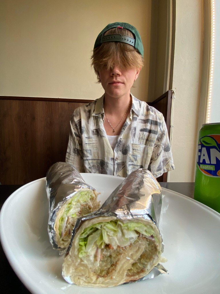 Morfar Karm ”Justeja, jag testade faktiskt en kebabrulle därifrån förra veckan, du sa ju att kebab är gott och jag har ju inte testat det innan”