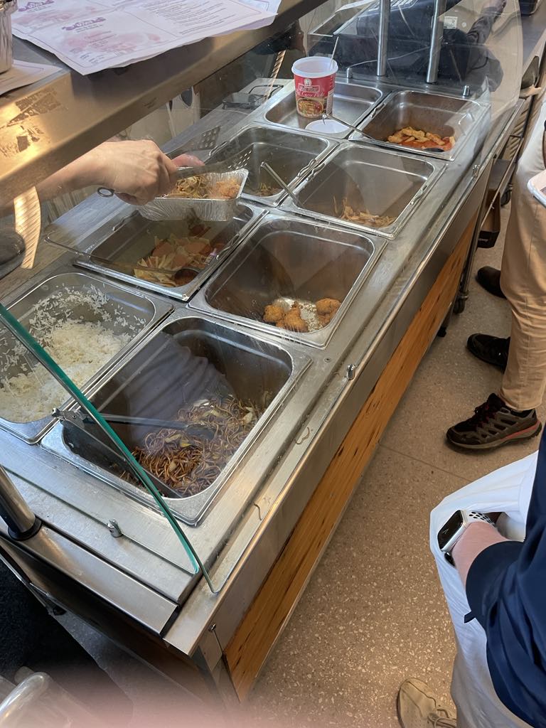 En dark horse på lunchmarknaden är Thaiway, som ligger inne i Fysikum, byggnaden mitt emot Forum. Thaiway är en riktig doldis: inte ens när man kommer in i byggnaden framgår det att det existerar, utan vi frågar oss fram och hittar i Fysikums hjärta en liten uppriggning i bambaliknande format (matsal för icke-göteborgaren). Mellan kl 11 och 13 serveras här thaimat att ta med för 79kr, och denna dag kan man välja på ris eller nudlar. Därtill serveras antingen friterad kyckling eller 2 olika currygrytor, som alla visar sig vara väldigt goda. Texten ”Vita betalar med Wish” förvirrar något initialt, men det går alltså bra att betala med swish. En fullständigt obefintlig marknadsföring och frånvaro från internet talar sitt tydliga språk: Thaiway klarar sig bra utan sånt.