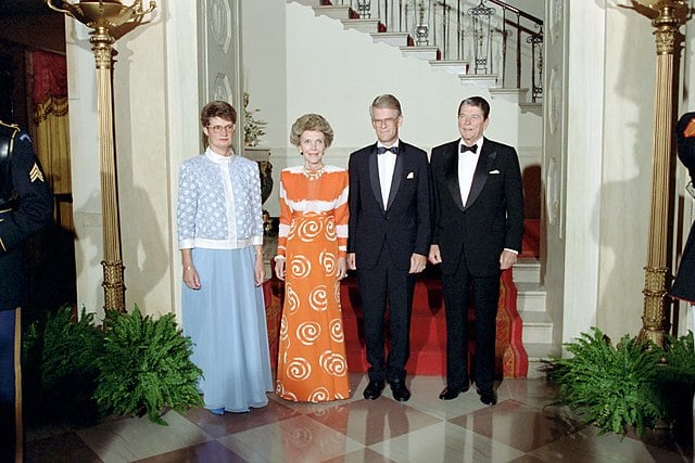 Reagan och Karlsson i klänning. Reagan och Karlsson i Smoking.