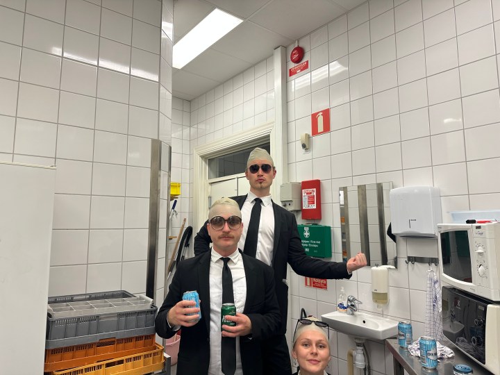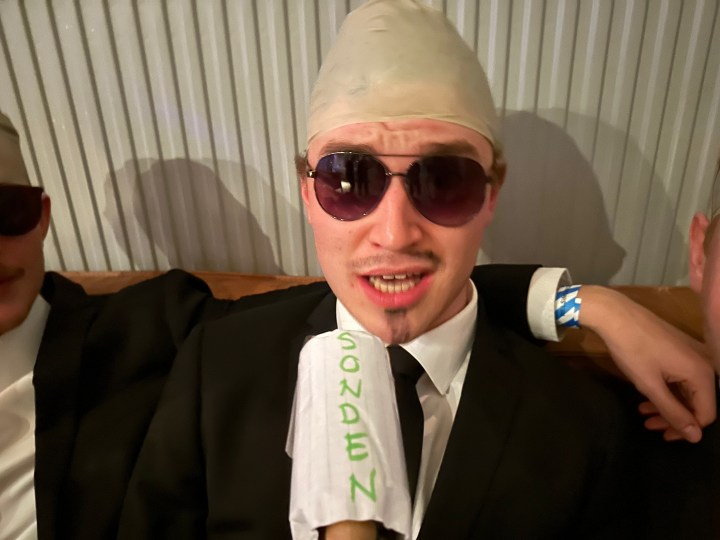 När jag dyker upp på Locus är corbals-kommitén i full gång att fixa inför kvällen. Det ska dukas, blandas drinkar och lagas mat (potatisbullar). Detta är rutin vid det här laget. Vid 18.30-tiden börjar de första marskalkerna ramla in genom dörren, förfestade och redo. Temat för kvällen är ett mysterium. Den vita skjortan och de svarta byxorna leder tankarna till servitörer eller kontorspersonal, men de obligatoriska solglasögonen förvirrar. Mitt i allt minglande gör fyra kostymklädda herrar entré till ett det öronbedövande ljudet av ”Yeah yeah yeah, Que no pare la fiesta, Don’t stop the party”. Temat blir genast uppenbart och helt plötsligt flyger det sellpy-kavajer och bald caps och svarta slipsar ut över hela rummet. Någon träffas i huvudet. Glas går i kras. Folk slänger sig ner på golvet för att få tag på en kavaj i just sin storlek. Innan någon hinner blinka är rummet fyllt av Pitbulls. Senast jag såg en sådan enhetligt klädd grupp var i personalrummet på vårdcentralen i Staffanstorp.