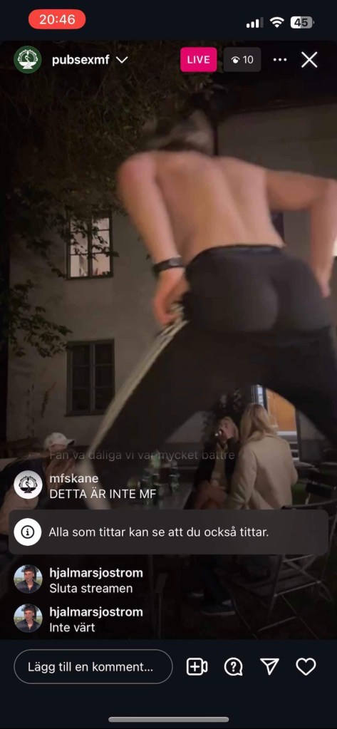 Detta är en referens till en episk (och kanske lite kontroversiell) livesändning sexmästeriet hade under marskalkperioden 2024. (Detta kanske inte borde spridas eller uppmuntras, men jag ser ju också det som min roll som sondenredaktör att befästa den så kallade ”loren” inom MF med de medel jag blivit välsignad med).